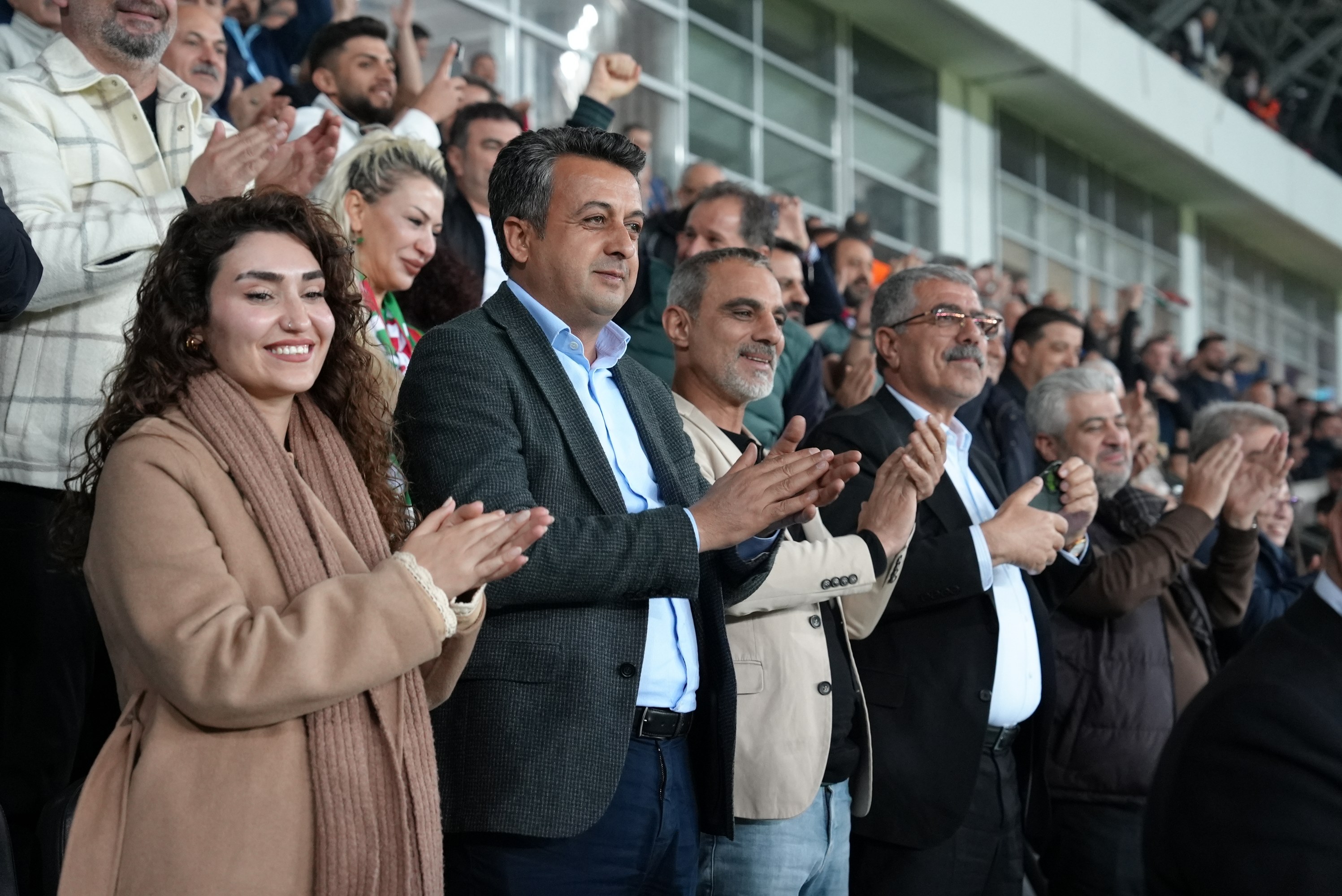 Hemşaredara Amedî ya Şarsitanê Girdî Serra Bucak, maçê Amedspor û Bolusporî ke Stadyumê Amedî de ame kaykerdene, Serekê Kulubê Amedsporî Nahît Eren, endamî, hemşaredarê qezayan, temsîlkarê dezgehanê sivîl û terefgiran temaşe kerd û bîye şirîkê coşê terefgiran.